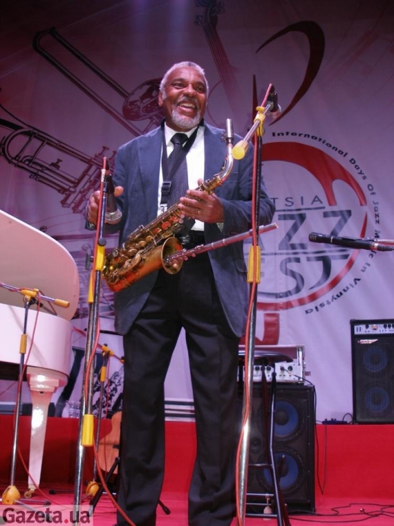 Второе отделение вызвало у зрителей настоящий фурор. Американец Джесси Джонс играл на саксофоне и флейте, пел, подтанцовывал. За роялем сидел Андрей Кондаков из России.