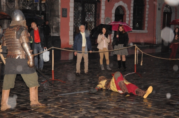 Мероприятия состоялись в стиле исторической реконструкции с соответствующими костюмами и стилизированным оружием. Организовывало событие издательство "Фолио". Автор вместе с реконструкторами из клуба "Галицкий лев" провели показательные исторические бои. Доспехи вместе с мечом и шлемом, который надел Богдан, весили около 20 килограммов.
