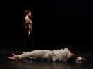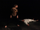 "Поскольку текст чрезвычайно абстрактный и большинство действий происходит именно во сне, - объясняет Юлия Заулична, сценограф спектакля. - Реальность актеры воспроизводят именно в пластических движениях. Танец для них ставил хореограф Александр Маншилин".