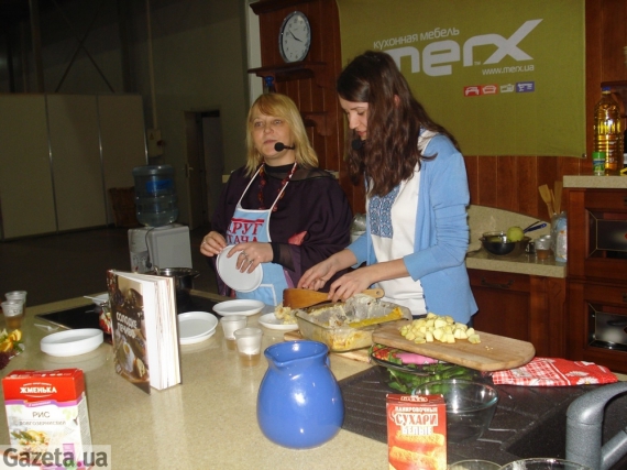 В рамках книжной ярмарки "МЭДВИН", которая в этом году проходит в течение 11-13 апреля в КиевЭкспоПлазе, украинская поэтесса Мария Морозенко готовила рисово-яблочную бабку с особым вишневым сиропом по рецепту Дарьи Цвек.