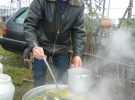 Пока продолжалась ярмарка, вокруг варили похлебку с курицей или уткой, жарили шашлыки. За 100 грамм правили 18 грн. Посетители брали к гарниру картофель по-уланевски. Большую порцию покупали по 15 грн. К мясу выстраивались очереди.