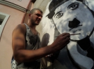 Также одновременно еще один мурал нарисовал певец Арсен Мирзоян. По улице Уральская на стене пиццерии изобразил Чарли Чаплина. Черно-белый портрет рисовали 3 часа. Использовали почти литр белой краски.