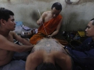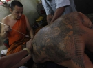 Один из самых удивительных фестивалей в Таиланде - ежегодный тату-фестиваль в буддийском храме Wat Bang Phra, что в 50 километрах на запад от Бангкока, начался вчера. В течение фестиваля тысячи верующих - только мужчины! - прибывают в храм, чтобы принять участие в специальном ритуале. Монахи этого храма известны во всем мире нанесением тату и производством амулетов, способных защитить владельца от всякого зла, даже от пули.