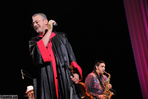 Музыканты несколько раз приглашали на сцену девушек. Кустурица показывал движения, которые они повторяли. Скрипач станцевал с поклонницей танго, а также появился в зеленом женском платье.