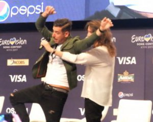 Конкурсант от Италии на международном песенном конкурсе Евровидение-2017 Франческо Габбани показал, как выполнять танцевальные движения из его выступления.