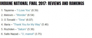 В рейтинге Wiwibloggs TAYANNA заняла первое место. Имеет 8,39 баллов из 10 возможных. На втором месте - MELOVIN. От европейских блогеров получил 6,54 балла.