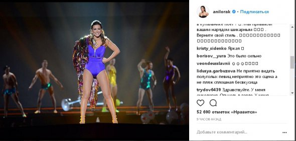 Отдельный шквал критики в Іnstagram вызвал снимок Лорак с шоу "Дива" в купальнике. Пользователи сети отметили, что такой наряд более уместен на показе нижнего белья и заметили, что платья идут артистке гораздо больше.