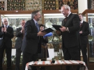 На церемонию передачи экспонатов в музей приехал заместитель министра культуры Тимофей Кохан, посол Германии Ганс-Юрген Гаймзет, председатель комитета Верховной Рады по вопросам культуры и духовности Владимир Яворивский и поэт Иван Драч.