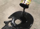 Свои работы он называет "картинами-скульптурами". На самом деле, это всего лишь живописные лужицы краски, вытекающей из банок и бутылок.