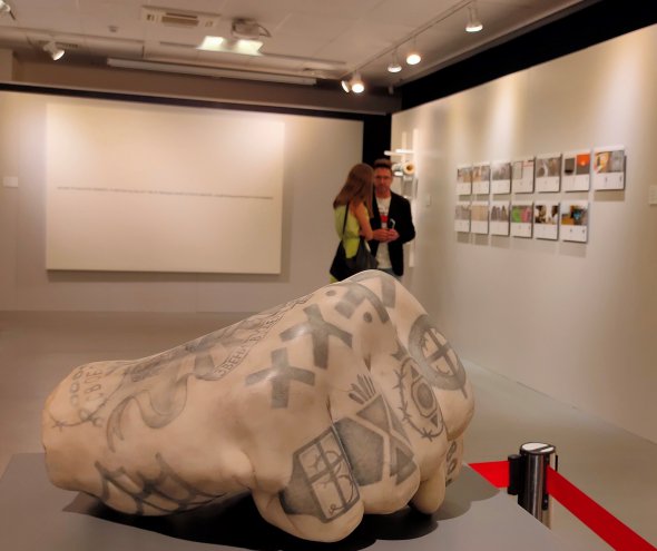 На выставке есть картины, фотографии, видео, скульптуры и инсталляции.