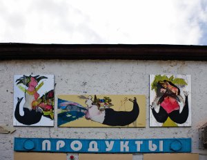 Большие работы 1,5х3 метра перекликаются с рисованными торговыми вывесками на мясных, кондитерских лавках, парикмахерских начала 20 века. Проектом воплотили замысел выйти на улицы города со своим искусством. Превратили провинциальный городок на южную художественную столицу, а центральную улицу - в музей современного искусства под открытым небом. Чудом до войны забрали работы в Киев на выставку. Назад они не вернулись", - говорит Алеся.