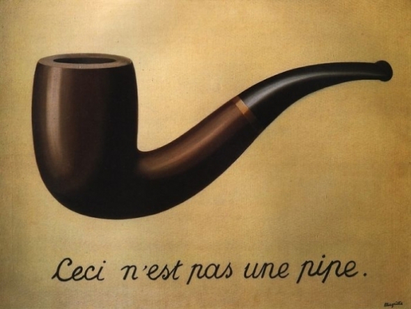 Особенно популярна трубка с подписью "Это не трубка". Таким образом художник доводит до сознания зрителя, что образ предмета - не сам предмет. Буквальность изображенного на картине ставит в тупик, который и сталкивает нас с тайной реального. Мы видим трубку, но на самом деле изображенный образ не является предметом. Ведь мы не можем положить вовнутрь табак для трубки и затянуться ароматным дымом.