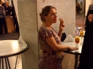 На концерт пианистки пришли около двух десятков беременных женщин. Также было много пар. Во время концерта они держатся за руки и целуются.