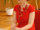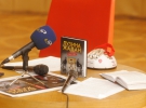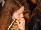 Лузина появилась на презентации во всем красном, косу оплела вокруг головы и украсила маками. Жадан - как всегда скромно в футболке. По очереди читали отрывки из своих текстов, затем отвечали на вопросы гостей, которых собралось не менее сотни.