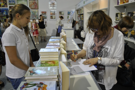 По окончании встречи, все идут к стенду издательства "Урбино" покупать книги писательницы и брать автографы. Учительница мировой литературы из Киевской области Ольга Борисовна уже начала читать "Бубу", которую в следующем году будут учить ее ученики.