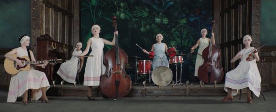 "Мы долго советовались по поводу костюмов, в которых было бы комфортно нам самим и которые бы одновременно отвечали эпохе из фильма, - говорит Cоломия Мельник. - Мы предлагали свои варианты, костюмеры ленты - свои. В конце концов пришли к выводу, что лучше всего Dakh Daughters подойдут старинные украинские народные сарафаны из коллекции Влада Троицкого, которые хранятся в театре "ДАХ" и в которых мы сыграли не один спектакль. Команда костюмеров очень постаралась, чтобы воспроизвести их точные копии. А дополнением к ним стали замечательные шляпы, которые стилисты сделали для каждой сцены отдельно".