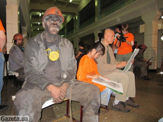 17 августа художник с мировым именем Цай Го-цян совместно с донецкими коллегами создал эскизы 18 портретов горняков, которые только что поднялись из забоя.