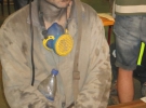 Акция прошла в админздании шахты "Октябрьская" в Донецке. Днем раньше были написаны 9 портретов рабочих соляной шахты в городе Соледар (Донецкой области).
