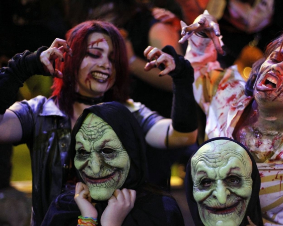 На улицах городов в ночь с 31 октября по 1 ноября можно увидеть толпы как взрослых, так и детей, переодетых в ведьм, привидений и прочую нечисть, ведь весь мир празднует Хэллоуин.