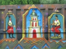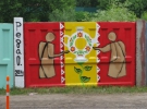 Александр Корбан из Макеевки с большим увлечением принялся за создание огромного панно на административном корпусе музея. Панно на фоне украинского флага - это крик души, Украина с нами и с ними, - говорит Жанна Чечиль, старший научный сотрудник Опошнянского Национального музея-заповедника украинского гончарства.