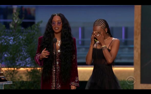 На 63-й церемонии H.E.R. сопровождала соавтор песни и исполнительница Тиара Томас.