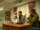 "Хрещатик-плаза" кардинально отличается от дебютного произведения Павла "Кляса". Но, что самое важное, остается стиль Вольвача по которому его и распознают. Прежде всего, это роман о взаимоотношениях человека и города, - говорит модератор встречи писатель Михаил Бринных. В 18-й зал магазина полный. Пришли коллеги Вольвача Тарас Антипович, Антон Санченко, Вячеслав Медвидь, Алексей Микитенко, Алексей Захарович, Александр Хоменко, народный артист Ярослав Гаврилюк и художник Владимир Гарбуз.