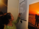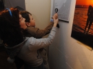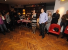 Мероприятие посвятили сборнику эссе Забужко "З мапи книг і людей". Книгу издал в сентябре поэтический фестиваль "Meridian Czernowitz". Перед началом вечера присутствующие рассматривают на стенах холла картины и фотографии иллюстратора изданий писательницы Ростислава Лужецкого.