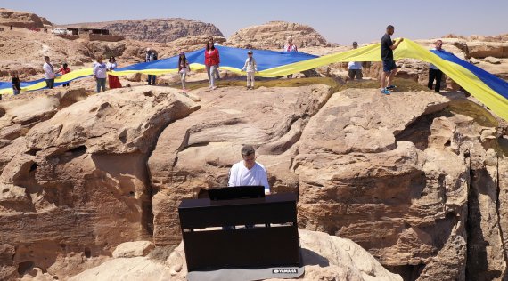 Украинский композитор и пианист-виртуоз Евгений Хмара в честь тридцатилетия независимости по программе МИД Украины привёз в Иорданию тридцатиметровый флаг Украины, а также сыграл национальный гимн в древнем городе Петра.