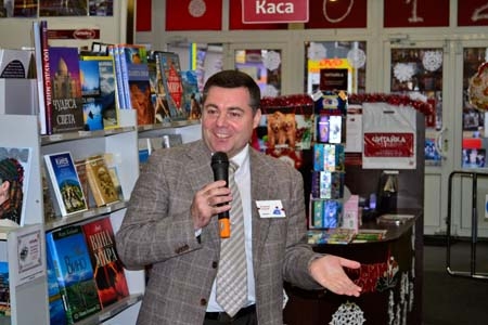 Накануне дня святого Николая Руслана Писанка, Лада Лузина, Владимир Чеповой, Сергей Руденко, Александр Бригинец, Мила Иванцова, Эдуард Юрченко помогали посетителям магазина выбрать книги.