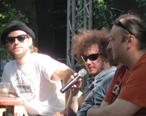 На нынешнем фестивале "Джаз Коктебель", который закончился вчера, выступила питерская группа "Billy's вand". Артисты - Билли Новик и Андрей Рыжик прогулялись по городу, пообедали в одном из местных ресторанов, а перед выступлением устроили "помидорную вечеринку": всем желающим дарили томаты.