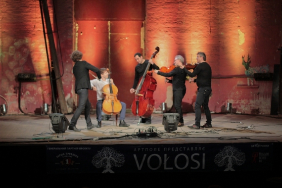 Киевский концерт Vo?osi сыграли в здании малой оперы. Три скрипки, виолончель и контрабас. Потрепанное и мистически старинное помещение малой оперы разрывается от нервно-этно-классической музыки с первых аккордов.