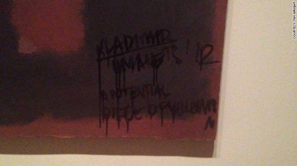 Гражданин Польши Уманец был арестован полицией британского графства Западный Сассекс в городе Уортинг в понедельник вечером. Днем ранее во всемирно известной галерее Уманец беспрепятственно подошел к картине Ротко "Черное на коричневом", стоимость которой оценивается в несколько десятков миллионов фунтов стерлингов, и написал в углу черной краской: "Владимир Уманец'12. Потенциальный кусок желтизны". Уманец, как отмечалось, покинул галерею, а сотрудников музея на место происшествия позвали посетители.