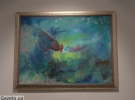 "Вот эта работа (светло полотно, на котором изображена черепаха и гнездо - автор). Это благотворительный лот, - продолжает Владислав. - Деньги, полученные от продажи, пошли бы на реставрацию Шоколадного домика. Он понимает, что надо поднимать. Пытается сделать свой вклад. Я даже не знаю, когда он находит время на все".