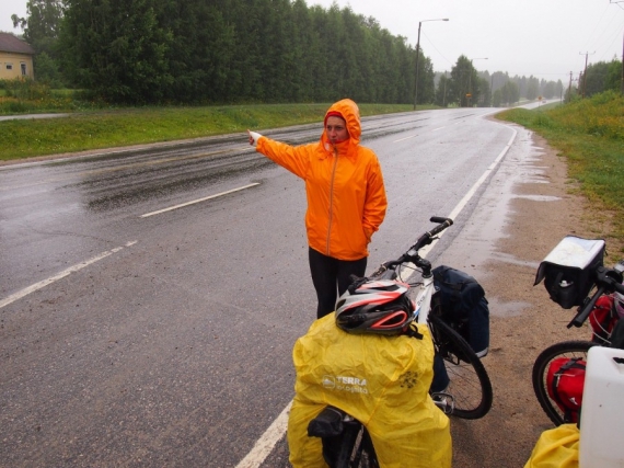 "Украина и Беларусь прошли очень плавно и весело. А Россия и Финляндия - это было что-то страшное, - рассказывает Ярина. У нее гипс на левой руке, на одну ногу прихрамывает. - За Санкт-Петербургом я на большой скорости упала с велосипеда. В руке возникло две трещины. Дальше было тяжело ехать. Пришлось пользоваться автостопом. Ловили бусы и грузовики. В России с этим проблем не было. Ловили машину за 5-8 минут. Причем останавливались как тсрашные лады, так и крутые джипы. Водители сворачивали со своего маршрута, чтобы нас довезти, куда надо. И нам об этом не приходилось просить. Зато финны проезжали на пустых бусиках и смотрели на нас, как инопланетян. А мы стоим под дождем, мокнем".