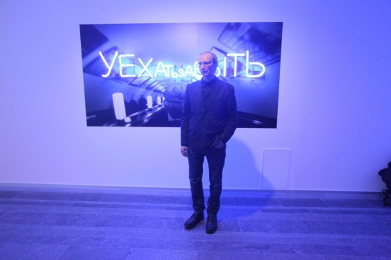 "Неон - это не новая техника, с ней уже давно работают многие художники. Моя новизна в том, что я применил ее к фотографии. Первую фотографию делал на московской станции метро "Комсомольская". Это единственная станции, где еще работает три эскалатора. Когда вернулся из Биенале, у меня было такое настроение, как у этого человека, спускающегося в метро. Мне хотелось все оставить и куда-то бежать. Вид Санта-Барбары - это символ бегства. Сфотографировал его год назад", - рассказал художник.