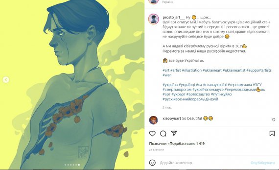 "Иллюстрации описывают мои переживания за Украину, украинцев, семью и друзей. Типажи могу списывать с себя или моих друзей. Но чаще всего описываю свой характер и эмоции. Так что образы девушек и парней - это в основном визуализация черт моего характера", - рассказала художница.