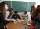 "Несколько лет назад с "Коронацией слова" я была в промо - поездке в Днепропетровске. Мы с госпожой Татьяной Логуш говорили о символике, в частности за цветок лилии, так называемую флер-де-лис. Она была изображена на обложке одной моей книги. Такой цветок широко используется в геральдике. А на старинных компасах делали в виде такой лилии острие стрелки указывает на север. Вот обо всем этом северную мистику у нас и шел разговор. Мы шли в кафе, где была назначена встреча с читателями. Каково было наше удивление, когда мы зашли в помещение. Во-первых, стены были окрашены фиолетовым цветом, а одна из представленных там книг была "Фиолетовые дети". А в качестве оформления, по ним были разбросаны те же стилизованные лилии, о которых только что шла речь. Мороз на коже почувствовали мы обе".