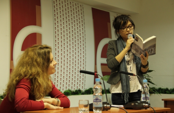 - Все герои в тексте "вар'яти". Немного сумасшедшие, безумные, - рассказывает о книге "Duty Free" Оксана Форостина. Вчера в книжном магазине "Є" роман презентовали писательница Оксана Форостина и певица, литераторка Ирэна Карпа.