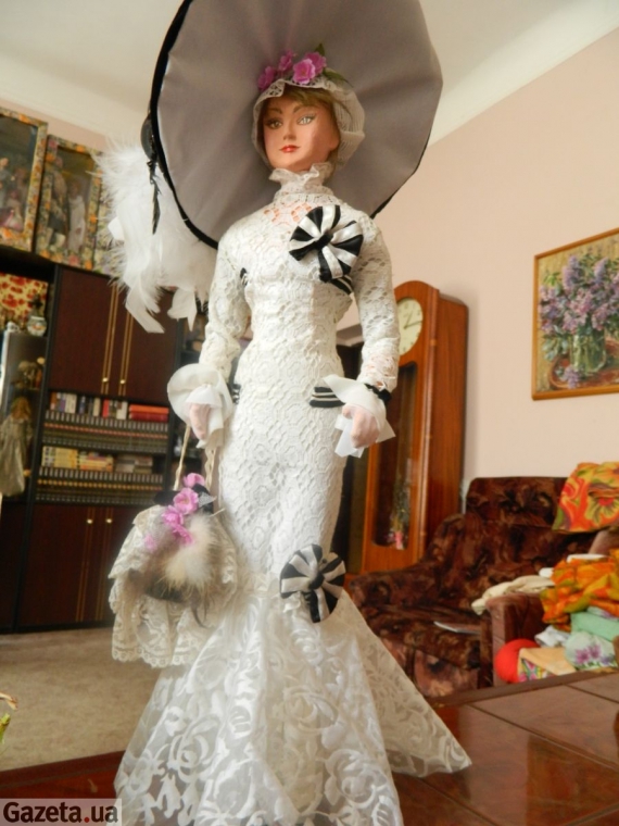 "Куклами занимаюсь уже 10 лет. Сначала никто не верил, что из этого что-то получится. Считали дилетантством. Первую куклу сделала из папье-маше, это была просто дама в шляпке и черном платье. А потом я подумала: так люблю кино, недаром всю жизнь фильмы смотрю. Решила сделать куклу, похожую на актера. Выбрала российского артиста Николая Еременко. Первую куклу сразу подарила, а вот Еременко у меня есть до сих пор", - поделилась воспоминаниями женщина.
