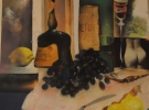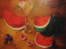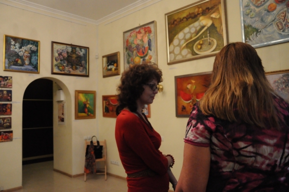 Художник Сергей Макушин принес для выставки картину, на которой изображена обнаженная женщина с грушами. Анна Атоян - "Свадебный натюрморт" с тортом. Елена Каменецкая-Остапчук изобразила также натюрморт со свадебными кусками торта. Альберт щеточный из Крыма нарисовал утренний натюрморт "Доброе утро!" с кофе и пирожными.