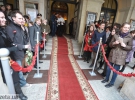 Вечер начался у главного входа в театр. Актеры подъезжали в белом лимузине, потом заходили внутрь по красной ковровой дорожке.