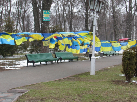 В Полтаве волонтеры показали 144 национальных флага. Их развесили на веревках по всему Корпусному парку.