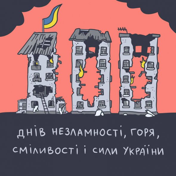 Пользователи Facebook сегодня посты о 100 днях полномасштабной войны иллюстрируют артом художника Никиты Титова. Художник с первых дней полномасштабного вторжения россиян создает мотивирующие иллюстрации о героической борьбе украинцев.