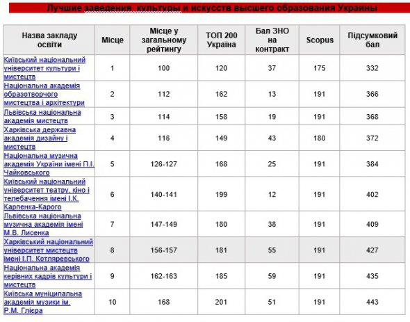Киевский национальный университет культуры и искусств занял лидирующую позицию - первое место в Топ-10 рейтинга " Лучшие высшие учебные заведения культуры и искусств Украины"