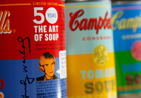 Лимитированный выпуск четырех видов консервов томатного супа выпущен на рынок с этикетками различных цветов, снабженными портретом и одной из цитат художника - например "Поп-арт доступен каждому" или "Каждый достоин 15 минут славы". Классический "Кемпбелл", покоривший неординарного мастера XX века, выполнен в красно-белой гамме.