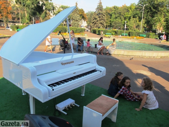 В Черкассах, в сквере за областным советом 3 июля установили белый рояль. Порадовать живой музыкой черкащан взялось КП "Дирекция парков" по ??инициативе городского головы Сергея Одарича.