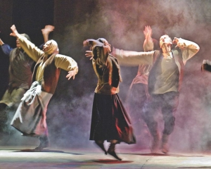 "Если история не прожита через искусство, она не опускается в подсознание народа. Пока мы знаем Голодомор на уровне учебников, он не становится нашей личной памятью. Этим спектаклем хотел создать такой миф для подсознания. Поэтическая история о парадоксе: самая богатая земля, самые работящие люди, и тут - голод. Нашли много выразительных метафор. В начале создаем картину счастливого народа. Мужчины в поле умываются, женщины из кувшинов льют им на руки зерно. Есть еще бричка, в которой возят трупы, и затем она становится обеденным столом. Очень физиологической сделали сцену, когда сбрасывают трупы в кучу. Ее сопровождает реальный монолог девушки, которую вывезли почти бесчувственную с покойниками, чтобы "второй раз не ехать". "Голодная кровь" - третий по популярности с 14 наших спектаклей. В финале в люльках опускается хлеб, и мы его раздаем зрителям. Это своеобразный момент причастия", - отметил Петренко.