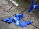 Несколько флагов Партии регионов сразу порвали в клочья мужчины в военной форме с нашивками "Украинское казачество".