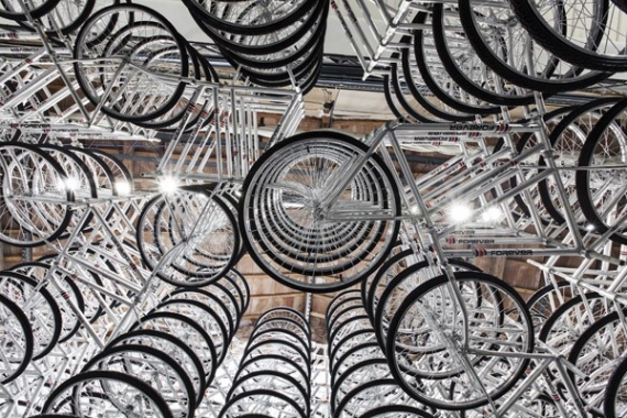 Новая работа Ай Вейвея, одного из самых известных и авторитетных в мире художников современности, называется - Stacked. Это арт-инсталляция из 760-ти велосипедов, собранных в столбики и расставленных в основном выставочном помещении галереи Galleria Continua в итальянском городе Сан-Джиминьяно.