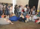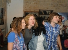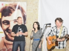Кстати один за другим выходят музыканты. Фома из группы "Мандри" играет "Я пойду в далекие горы" в авторской акустической версии. Молодая певица Оксана Муха поет акапелла "Колыбельная для Оксаночки".